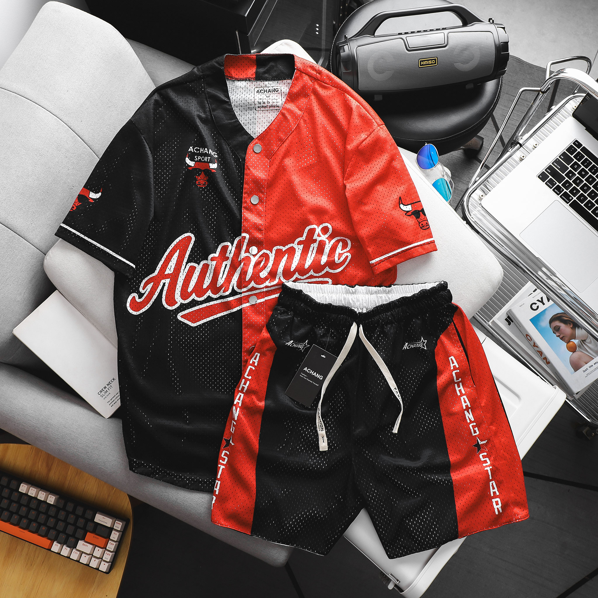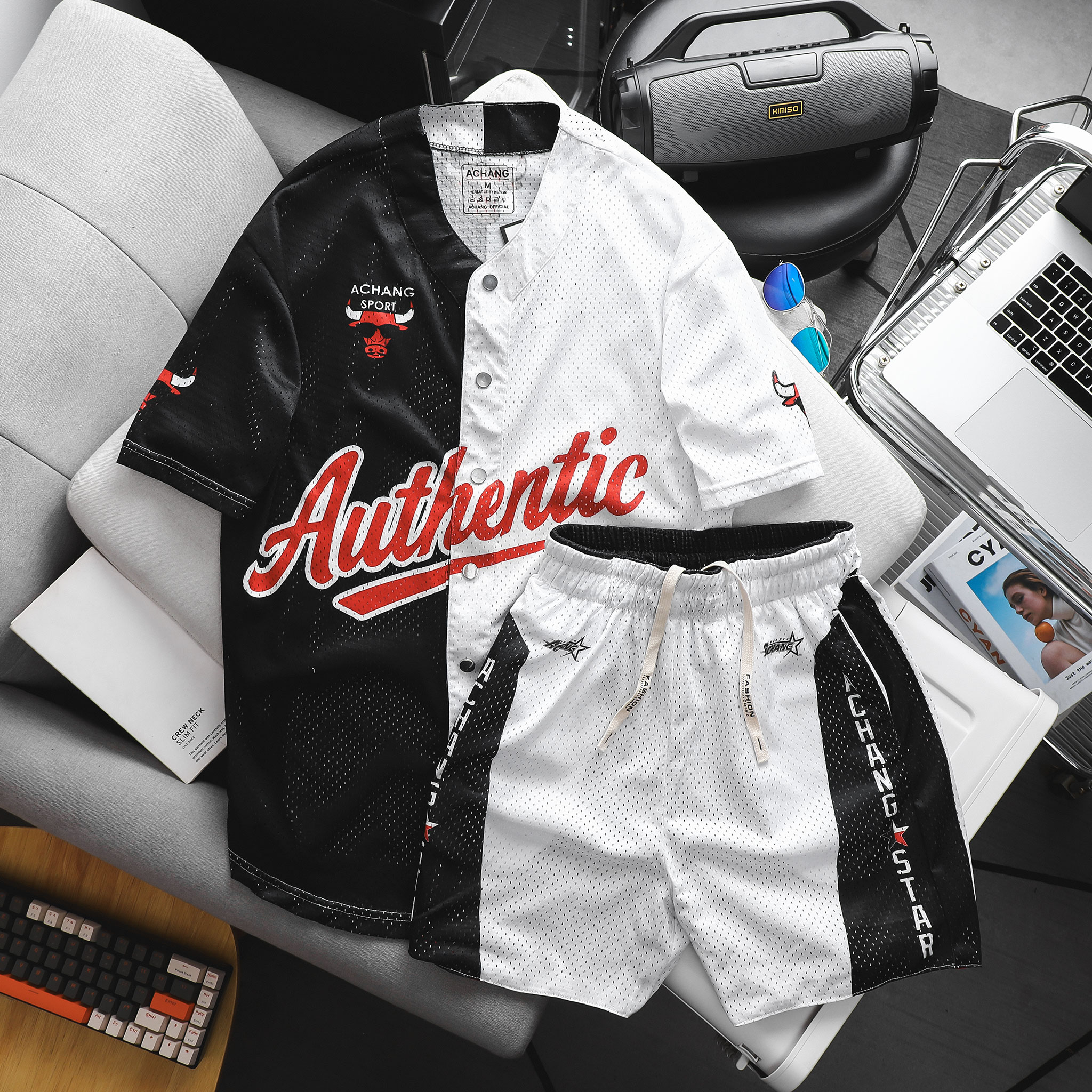 Áo Bóng Chày BUFFALO và quần 2 MẶT ACHANG chất lussi mesh thoáng mát, phù hợp thể thao vận động thời trang